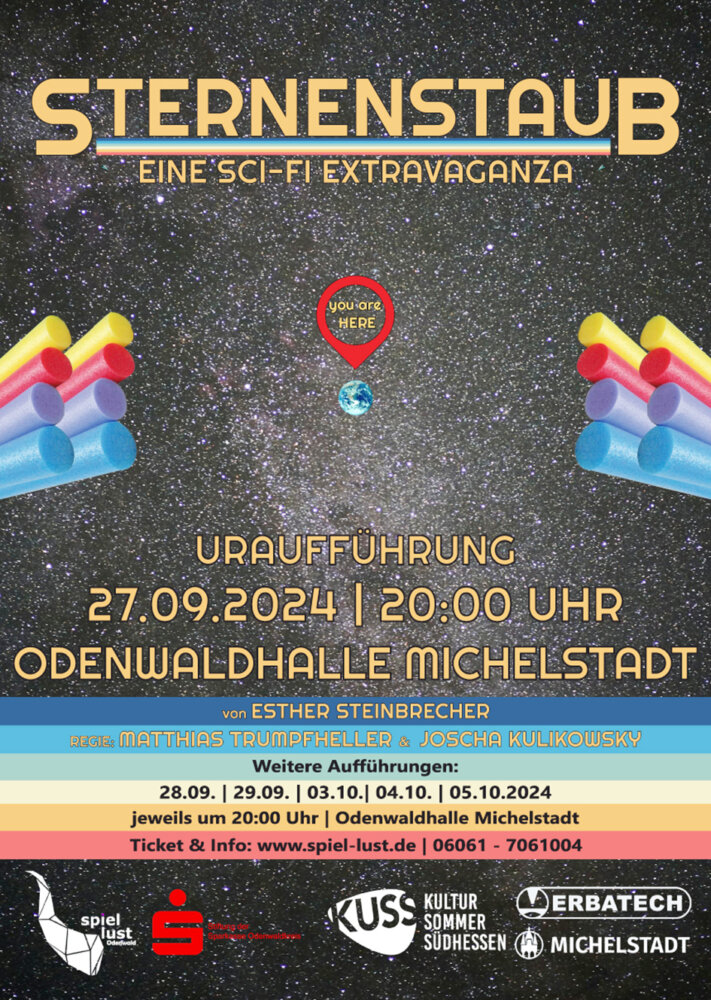 Michelstadt. Eine Premiere gibt es am Freitag, 27. September, in der Odenwaldhalle: Das Theaterteam Spiellust Odenwald führt um 20 Uhr die Sci-Fi Extravaganza “Sternenstaub” auf.