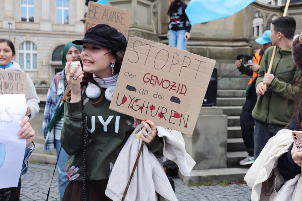 Eine Jugendgruppe aus dem Odenwald, die „Uyghur Youth Initiative”, organisierte ebenfalls eine Demonstration in Frankfurt. Bei der Gruppe handelt es sich um Jugendliche zwischen 16 und 23 Jahren, die sich zusammengefunden haben, um gemeinsam die Stimme zu erheben für jene Menschen, denen ihre Menschenrechte genommen wurden. Sie versammelten sich auf dem Roßmarkt, um gegen die Menschenrechtsverletzungen in China zu protestieren. Dort trugen Redner eigene Texte und Gedichte über die Unterdrückung der Uiguren in China vor. Währenddessen verteilten Demonstrierende Flyer mit entsprechenden Inhalten. Besonders durch Plakate mit Aufschriften wie „Wer schweigt, ist Teil des Problems” zogen sie die Aufmerksamkeit auf sich.
