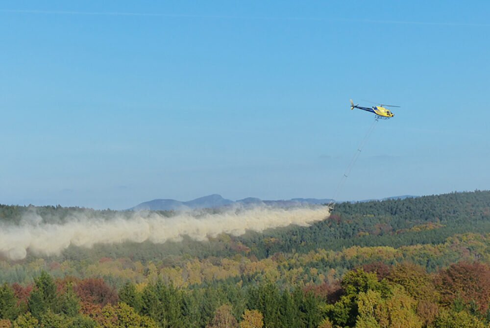 Oberzent. Das hessische Forstamt Beerfelden lässt per Hubschrauber den Waldboden kalken.