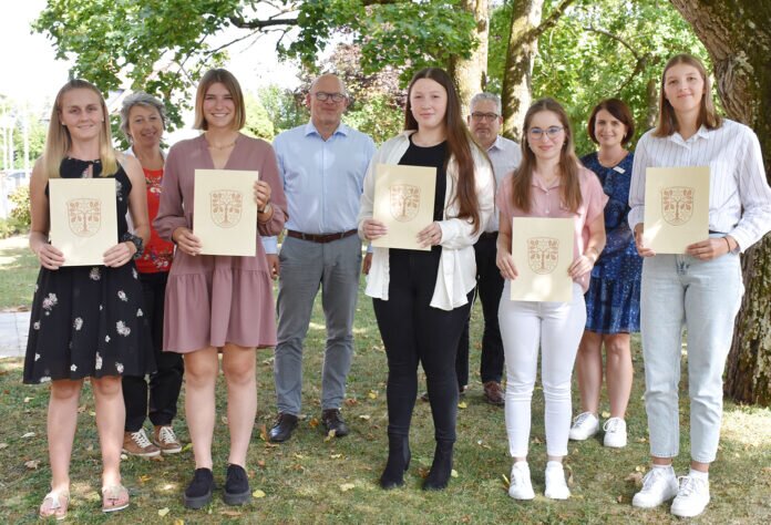 Shannon Obermeier und Lisa Olt haben ihren dualen Bachelor-Studiengang Public Administration abgeschlossen und wurden von Landrat Frank Matiaske am Montag, 29. August zu Inspektorinnen und damit zu Beamtinnen auf Probe ernannt.