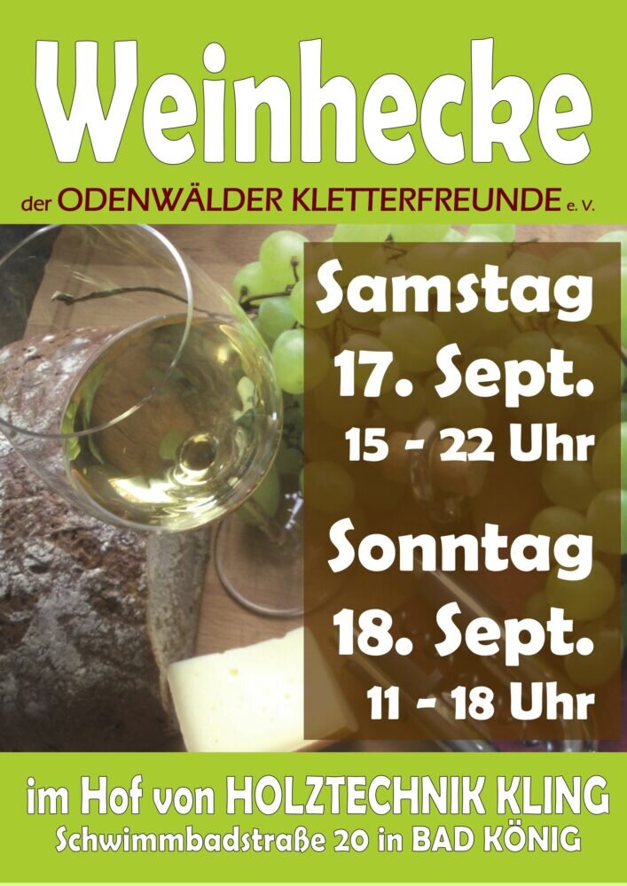 Für Weinkenner und -liebhaber – oder die, die es noch werden wollen – veranstalten die Odenwälder Kletterfreunde e. V. wieder eine Weinhecke.