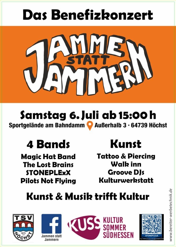 Dann folgen gegen 19.30 Uhr “The Lost Brains” mit Punk’n Roll, ab circa 21 Uhr starten die Väter der “Jammen statt Jammern” Konzertreihe namens “Stoneplexx” mit Stoner-Sound und SoulRock.