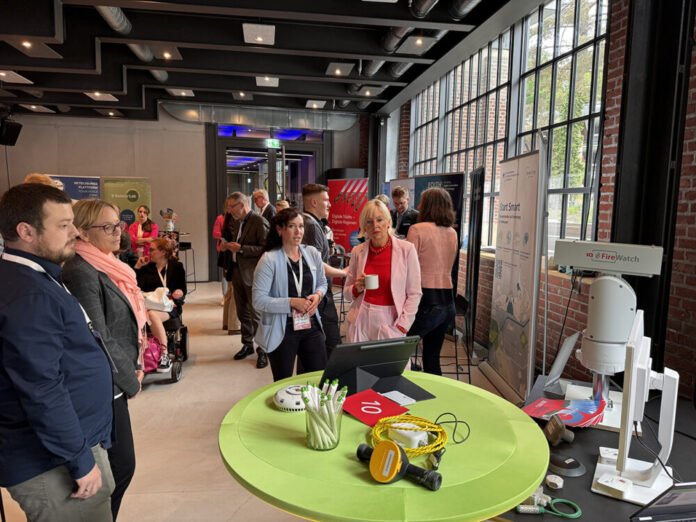 Projektinitiatorin Anita Puschmann und Projektmanagerin Bettina Helfrich stellten die digitalen Ansätze im Katastrophenschutz vor. Im Mittelpunkt standen dabei unter anderem die „Firewatch“-Kamera zur frühzeitigen Waldbrand-Erkennung sowie verschiedene Sensoren.