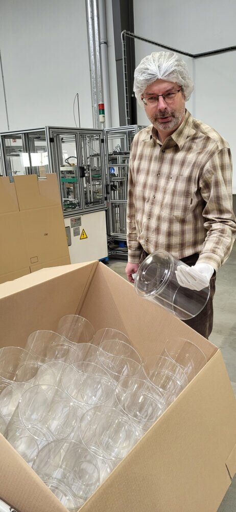 Das Unternehmen in Michelstadt verwendet ausschließlich sortenreinen Kunststoff, der zu 100 Prozent recycelt und wiederverwendet werden kann. Es besteht ein enormer Unterschied zwischen sogenannten Verbunden, die einfach nur als Restmüll entsorgt werden können und einer sortenreinen Kunststoffverarbeitung. Die PET-Abfälle, welche bei der Produktion anfallen und wieder zum Folienhersteller zurückgeführt werden, können erneut verwendet werden.