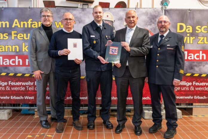 Erbach-Haisterbach. Die Stadt Erbach plant den Neubau eines gemeinsamen Feuerwehrhauses für die Freiwilligen Feuerwehren Günterfürst und Haisterbach. Für das Vorhaben hat das Land Hessen eine Förderung in Höhe von 322.360 Euro bewilligt. Den entsprechenden Zuwendungsbescheid überreichte Heimatschutzminister Roman Poseck an Erbachs Bürgermeister Dr. Peter Traub.