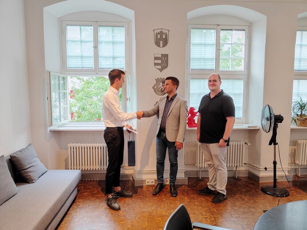 Groß-Umstadt. Die Bereiche Wassergewinnung, Wasseraufbereitung und Wasserspeicherung gehören mit zu den wichtigsten Aufgaben einer städtischen Infrastruktur. Solange alles reibungslos abläuft, bemerkt man die harte und verantwortungsvolle Arbeit dieser Mitarbeiter nur kaum. Sollte jedoch einmal etwas nicht funktionieren, wird sehr schnell jedem Bürger deutlich, dass man ohne sie nicht gut leben kann. Umso wichtiger ist es, dass dort ausgezeichnet geschulte Mitarbeiter beschäftigt sind. Um dies zu sichern, wurde der städtische Mitarbeiter Christoph Schnürer zur Fortbildung zum geprüften Wassermeister geschickt. Zum Abschluss seiner Ausbildung wurde ihm von Bürgermeister René Kirch gratuliert, der ebenfalls das große Potential in seinem neuen Wassermeister erkennt und verdeutlicht, dass die Ausbildung guter Mitarbeiterinnen und Mitarbeiter der beste Weg sei, dem Fachkräftemangel entgegen zu treten und sich deshalb sehr für die aktuellen und zukünftigen Ausbildungsplätze bei der Stadt Groß-Umstadt in allen Bereichen einsetzt. Ab November wird Chrsitoph Schnürer für die Bereiche Wassergewinnung, Wasseraufbereitung und Wasserspeicherung verantwortlich sein. Somit obliegt ihm auch u.a. der Betrieb der hochkomplexen Trinkwasseraufbereitungsanlage. red