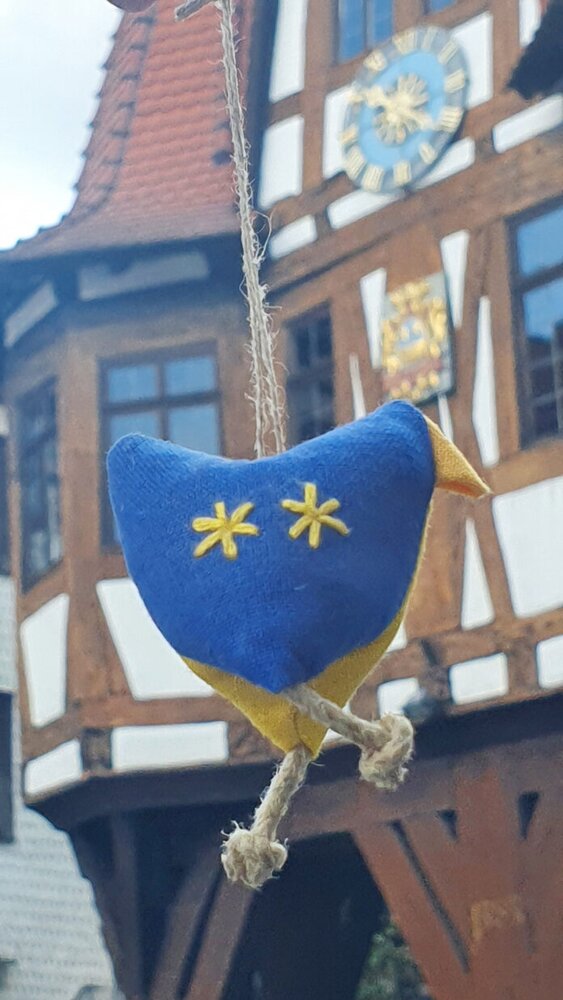 Michelstadt. Die Stadt bekommt ihr eigenes Huhn aus Stoff – in blau-gelbem Gewand mit zwei aufgestickten Sternen. Präsentiert wird es auf dem Kunsthandwerkermarkt vom Freitag, 25., bis Sonntag, 27. August, im Stadtgarten.
