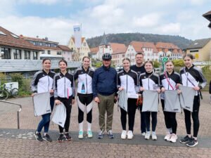 Die 37 km lange Strecke mit Ausgangspunkt am Gasthaus „Grünewalds“ in Ober-Klingen führte den hessischen Ministerpräsidenten mit Bürgerinnen und Bürgern und in Begleitung von Landrat Frank Matiaske und Bürgermeister Horst Bitsch bei dieser Radtour auch auf den Montmelianer Platz nach Höchst, wo der TSV 1875 Höchst eine Verpflegungsstation für die Radfahrer eingerichtet hatte.