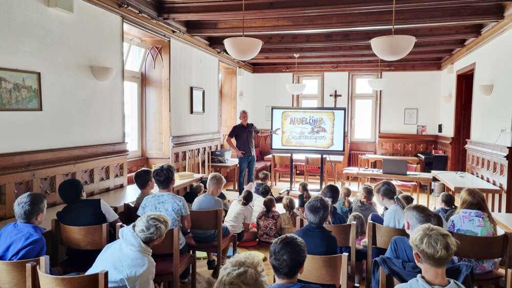 „Seemannsgarn und Nadelöhr“ ist eine Piratengeschichte, die der Odenwälder Autor Hülsermann zusammen mit der Illustratorin Jenni Bödeker in ein Kinderbuch verwandelt hat. Die dritten Klassen der Steinbacher Einhardschule waren zu der Lesung eingeladen.