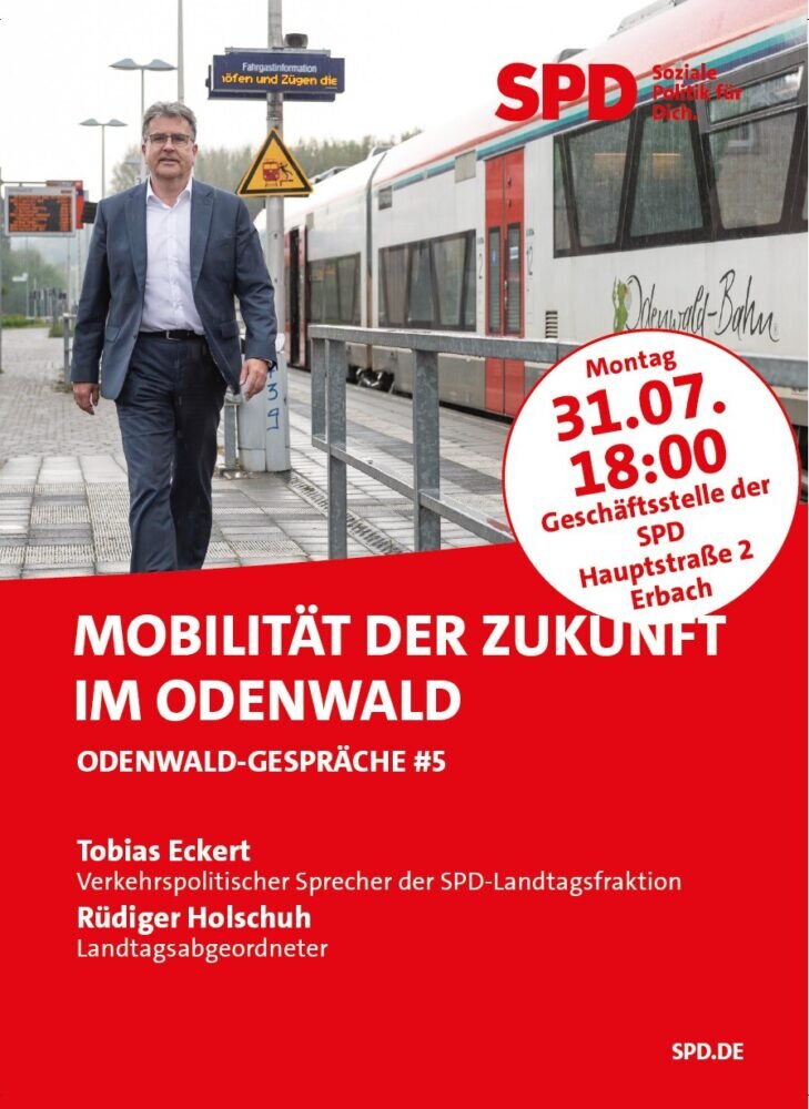 Erbach. Der SPD-Landtagsabgeordnete Rüdiger Holschuh lädt zur fünften Auflage der Odenwald-Gespräche am Montag, 31. Juli, um 18 Uhr in die Geschäftsstelle der SPD in Erbach ein.