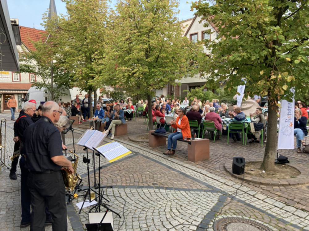 Die Besucher genossen Zwiebelkuchen und Federweißer. Für die musikalische Unterhaltung sorgte das “Salon Orchestra Odenwald”, das mit swingenden Bläsersätzen und Musik aus den 20er und 30er Jahren für Stimmung sorgte. red