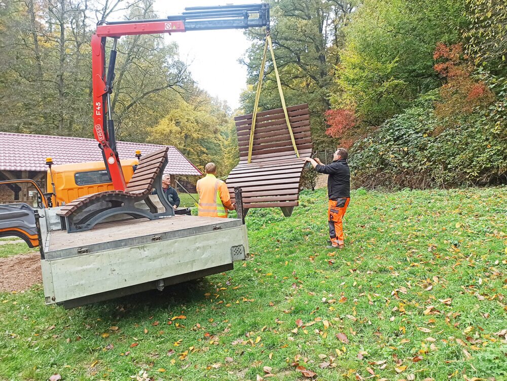 Erbach. Der Wildpark Brudergrund mit Rot-, Dam- und Muffelwild wird stetig gepflegt und erweitert. Nun stehen neue Picknickbänke, Erholungsliegen und Spielgeräte auf der Spiel- und Freizeitfläche des Erholungsgebiets.