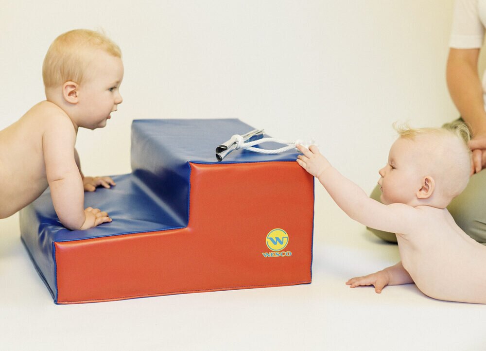 Die nach dem Alter der Babys eingeteilten PEKiP-Gruppen treffen sich wöchentlich für 90 Minuten, um Bewegungen und Laute zu üben.