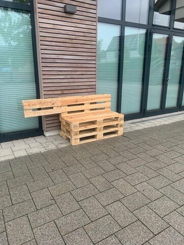 Die erste Sitzgruppe aus Paletten konnte in Wald-Amorbach an der alten Schule aufgestellt werden.