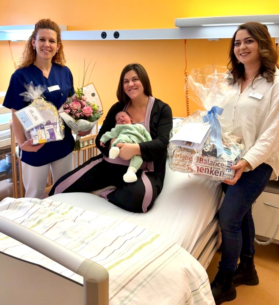 Im vergangenen Jahr verzeichnete das GZO insgesamt 413 Geburten, davon 238 Jungen und 175 Mädchen. Die Leitung von Kreißsaal und Entbindungsstation gratulierte der Mutter Selma Sallakou aus Rai-Breitenbach herzlich zur Geburt ihres dritten Kindes und überreichte Glückwünsche sowie Präsente der GZO-Geschäftsleitung, der Bären- und Elefantenapotheke in Erbach und der dm-Drogeriemärkte im Odenwaldkreis.