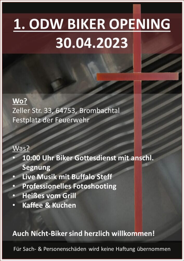 Brombachtal. Das erste Odenwälder Biker Opening startet am Sonntag, 30. April, um 10 Uhr in der Zeller Straße 33 auf dem Festplatz der Feuerwehr.