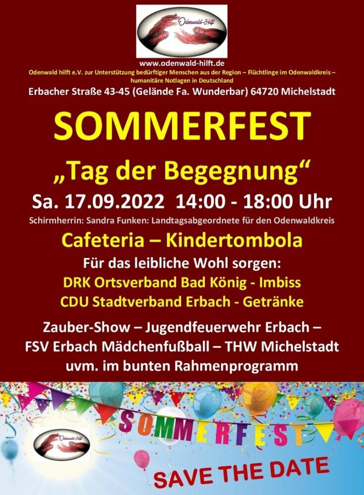 Am Samstag, den 17. September, veranstaltet der Verein von 14:00 Uhr bis 18:00 Uhr sein Sommerfest unter dem Motto „Tag der Begegnung“ und lädt alle Interessierten zur Teilnahme ein.