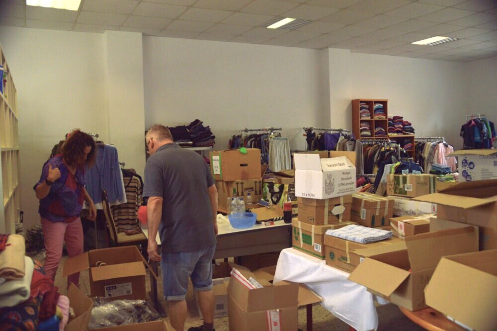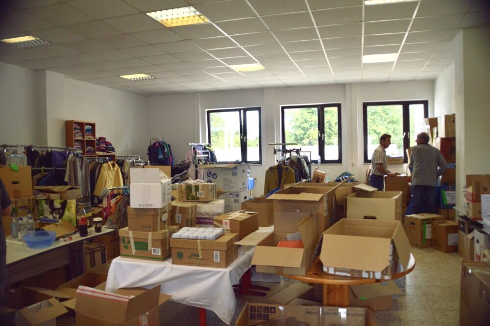 Aber nicht nur die Vereinsgründung ist neu; auch die Räume. Steil gehen die Treppen zu den neuen Räumlichkeiten nach oben. Im Eingangsbereich, auf den Stufen und sogar vor dem eigentlichen neuen Vereinsraum türmen sich Kisten und Kartons. Es ist kaum zu übersehen, wie groß die Spendenbereitschaft der Odenwälder ist. Sogar der neue Raum selbst, den die Organisation „Odenwald hilft“ seit kurzen auf dem Gelände der Firma Wunderbar in Michelstadt bezogen hat, scheint aus allen Nähten zu platzen. „Diese ganzen Kartons müssen ausgepackt und sortiert werden.“, sagt Baßler, während sie am Ordnen ist. „Und das hier drin sind alles nur Sommersachen.“, fügt Steibert hinzu. „Hier draußen im Flur stehen noch jede Menge Kartons. Das ist alles Winterkleidung.“, erklärt er weiter und zeigt dabei auf einen riesigen Berg aus unterschiedlich großen Kartons. Nicht nur über die Spenden sind die Helfer von „Odenwald hilft“ dankbar, sondern auch über eine Vorsortierung durch die Spender. Wenn die Waren in Kartons gepackt und gut beschriftet abgegeben werden, erleichtere dies die Arbeit erheblich. Das der Raum allerdings nicht barrierefrei ist, sehen die Helfer als ein zukünftiges Problem.