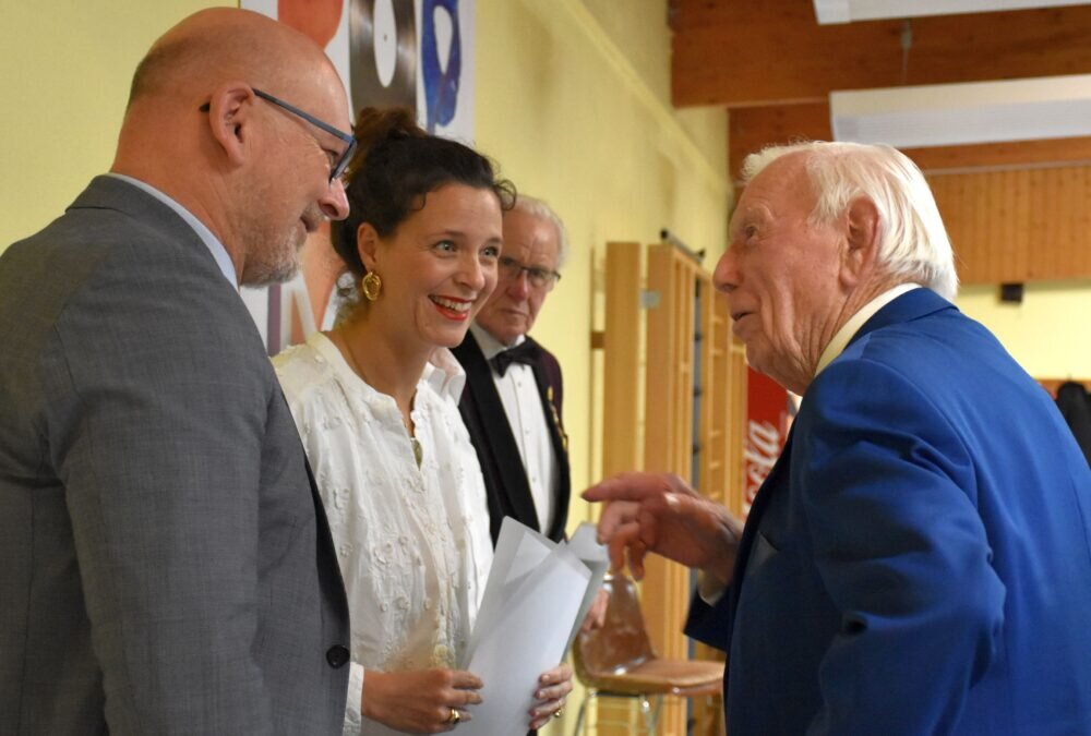 Sie überreichten den Jubilarinnen und Jubilaren für jahrzehntelanges aktives Singen in der Hans-Neidig-Halle in Bad König/Nieder-Kinzig Ehrennadeln und Urkunden – vier Mal für 40 Jahre Chorgesang, neun Mal für 50 Jahre, drei Mal für 60 Jahre, ein Mal für 65 Jahre sowie je zwei Mal für 70 und 75 Jahre.
