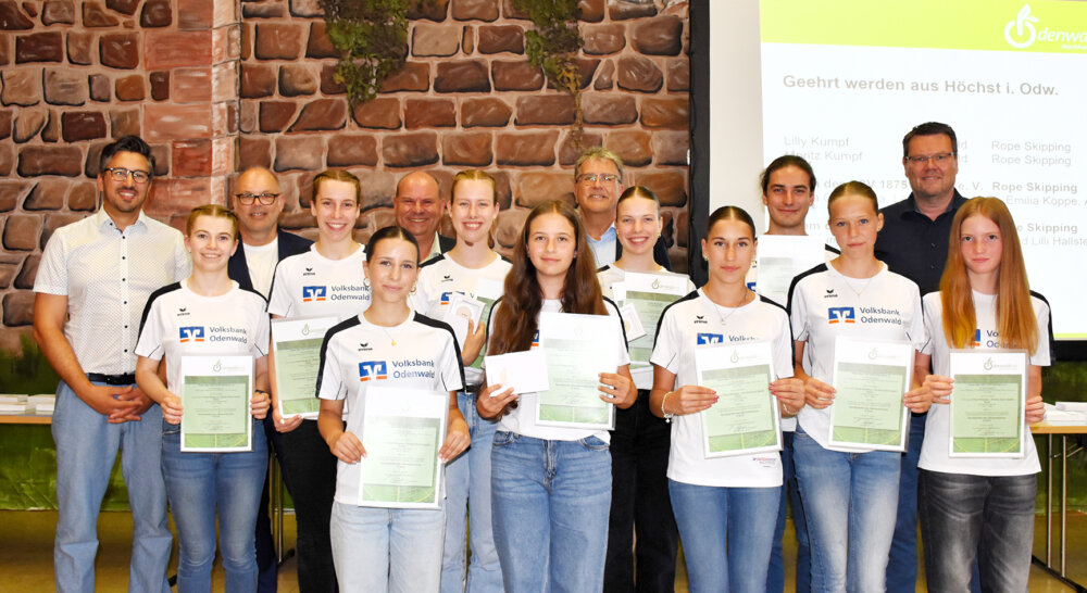 Laura Orzeszyna, Leni Madleen Karg, Emilia Köppe, Alara Yilmaz und Lina Uhrig (Team des TSV 1875 Höchst e. V. – Bundesfinale Disziplin Rope Skipping – Double Dutch Speed Relay), Lilly Kumpf, Tabea Paul, Lea Friedrich und Lilli Hallstein (Team des TSV 1875 Höchst e. V. – Rope Skipping – Europameisterschaft Disziplin Single Rope Speed Relay), Stephan Mertins und Gesa Heers (Mixed-Team des VfL Michelstadt – Weltmeisterschaft SwimRun), Leonie Zellmer, Lucia Chen, Laura Bär, Sebnem Moustafa, Cecilia Diehl, Clara Fornoff, Klara Schaubeck, Anna Landgraf, Marlene Zellmer, Nika Spatz, Lara-Marie Görner, Paula Heider, Felix Alies, Alina Alies, Zarah Koch, Finja Siehndel, Chiara Scaletta, Mathilda Sommer, Lotte Muhn und Victoria Stevoska (Formation der Tap Dragons Bad König – Weltmeisterschaft Stepptanz), Clara Körbitz, Hanna Schäfer, Simon Schäfer, Berit Storch, Melanie Strauß, Jo Insa Bahr und Zarah Koch (Smallgroup der Tap Dragons Bad König – Weltmeisterschaft Stepptanz), Mathilda Sommer und Zarah Koch (Duo Junioren 2 der Tap Dragons – Weltmeisterschaft Stepptanz), Alina Alies und Nika Spatz (Duo Junioren 1 der Tap Dragons – Weltmeisterschaft Stepptanz), Peter Schüssler, Jonathan Noll, Marlon Krämer, Luis Siegler und Linus Knorr (Männer-Mannschaft der WG Fr.-Crumbach/Bürstadt – Deutsche Meisterschaft RKS-Dreikampf)