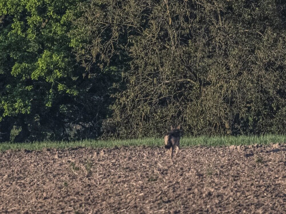 Gegen 7 Uhr morgen war er unterwegs bei seiner täglichen Runde mit Kamera und Hund durch die Region. Diesmal kam ihm dann statt Reh oder Hase ein ganz besonderer Kandidat vor die Linse – ein Wolf, dabei „hoffte und schaue ich immer nach einem Luchs“. Nun dann – ein Wolf. Der trottete entspannt über das Feld und witterte nicht, dass sich Kristel rund 300 Meter entfernt mit der Kamera im Anschlag befand.