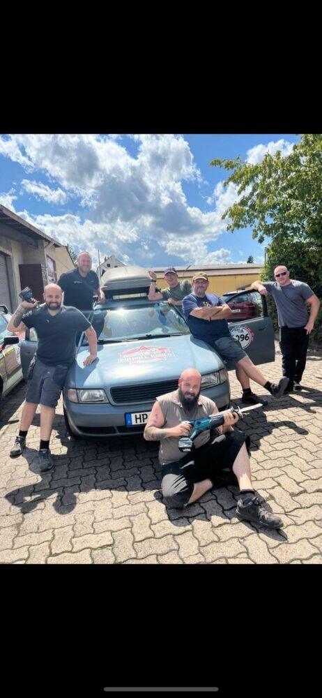 Im letzten Jahr war dies der Transport eines riesigen Teddybärs auf dem Dachgepäckträger. Um die Strecke zu bewältigen, müssen sich die Garage Brothers ranhalten: Das Auto für dieses Jahr, ein alter Passat, hat noch einigen Reparaturbedarf. Vor einer Woche konnte der Motor zum Laufen gebracht werden, aber noch waren faustgroße Rostlöcher in der Karosserie, die Benzinleitung machte Mucken.