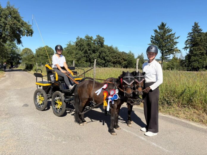 Kristina Kiermeier gewann mit dem Shetland-Pony-Duo Branka & Snoop die Dressur der Zweispänner-Ponys (Note 7,4) und sicherte sich in der kombinierten Wertung U18 den ersten Platz.