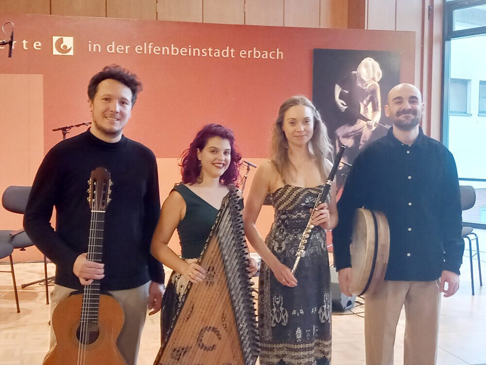 Johanna-Leonore Dahlhoff (Flöte), Eleanna Pitsikaki (Kanun), Youssef Laktina (Perkussion) und Andrés Rosales (Gitarre) ließen ihre Musikinstrumente erklingen.