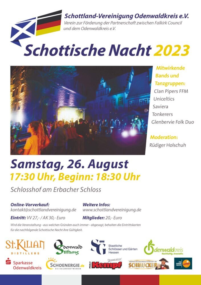 Erbach. Die Schottlandvereinigung Odenwaldkreis veranstaltet am Samstag, 26. August, eine schottische Nacht im Erbacher Schlosshof.