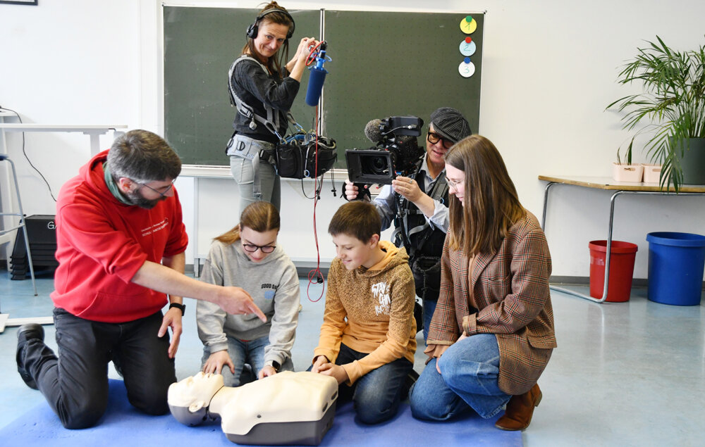 Reichelsheim. Das ZDF war kürzlich für einen Drehtag an der Georg-August-Zinn-Schule in Reichelsheim. Thema des geplanten Beitrags in der Reihe „Plan B“ ist das Pilotprojekt der Laienreanimation, die in den Lehrplan an hessischen Schulen kommen soll.