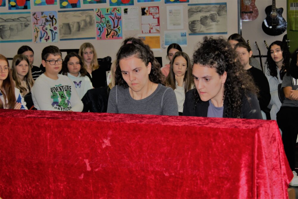 Teil der Begegnung waren Schüler des Musikschwerpunktes aus den Jahrgängen 6, 7 und 8, welche einen plastischen Eindruck des Künstlerinnenlebens bekamen. Nebst musikalischen Eindrücken ihres Könnens auf dem Klavier, konnten die Schüler mit den Künstlerinnen ins Gespräch kommen.