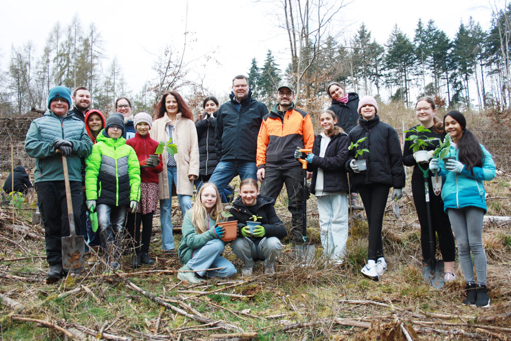 Höchst. Anfang April ging es für die Schüler der 5Gb, 5Gc und 8Gc der Ernst-Göbel-Schule mit den Klassenlehrkräften in den neuen Schulwald zum Bäume pflanzen.