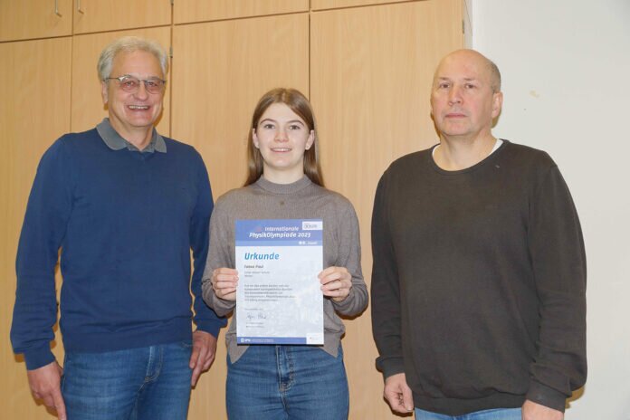 Tabea Paul qualifizierte sich in dem deutschlandweit ausgetragenen Wettkampf mit Experimenten und anspruchsvollen Theorieaufgaben für die zweite Runde, obwohl sie sich noch zwei Jahre vor dem Abitur befindet. Sie wurde mit einer Urkunde ausgezeichnet.