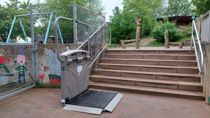 Michelstadt. Seit kurzem ist ein Plattformlift an der Außentreppe der evangelischen Grundschule in Weiten-Gesäß installiert. Er bringt die Grundschüler, die auf einen Rollstuhl angewiesen sind, in kurzer Zeit von der neu errichteten Zugangsebene in den Schulhof.