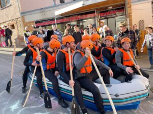 Großer Respekt sei diesen tapferen Ruderern erwiesen, die mit einem Bein über der Reling das Boot antrieben – auch den Berg hoch. Überlegungen in unserer Redaktion: Die müssen Beine wie Schwarzenegger haben!