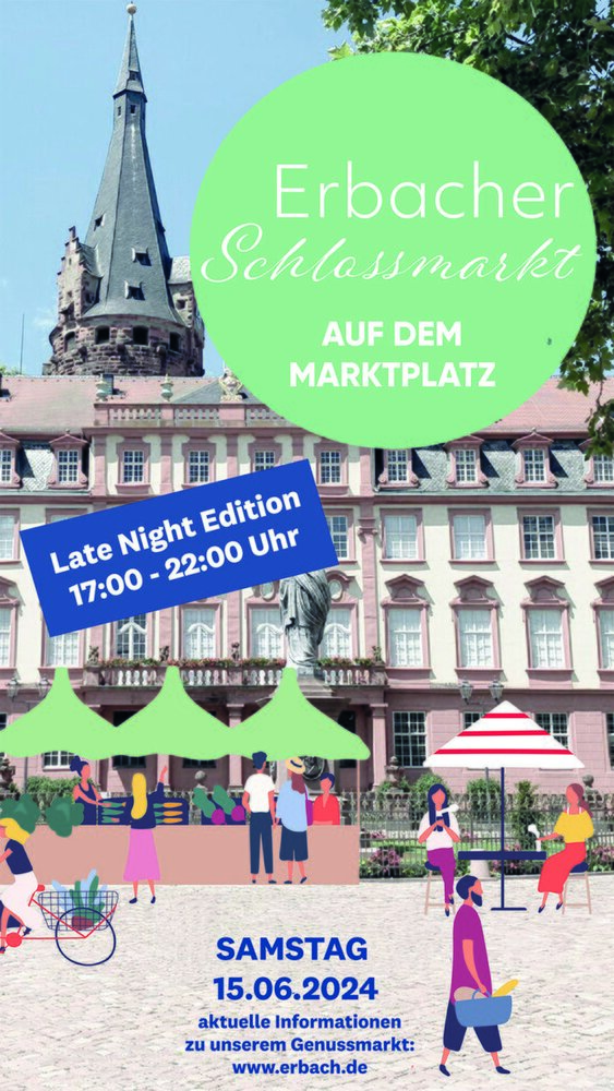 Erbach. Am Samstag, 15. Juni gibt es eine Late-Night-Ausgabe des Erbacher Schlossmarkts, wenn die Marktbeschicker mit ihren Angeboten von 17-22 Uhr auf den Marktplatz stehen.