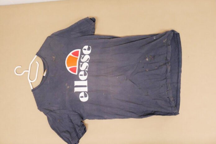 Etwa 10 Meter neben der abgebrannten Schutzhütte wurde ein blaues T-Shirt mit dem Aufdruck “Ellesse” in der Nähe einer Feuerstelle gefunden.
