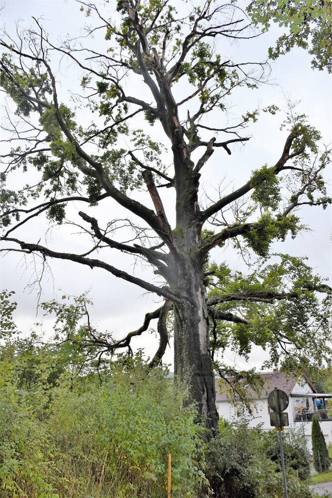 Die Alte Buche am Golfplatz im Oberzenter Stadtteil Hetzbach muss in Kürze gefällt werden, denn durch die Trockenheit der vergangenen Jahre und mehrerer Stürme hat sich ihr Zustand stark verschlechtert.