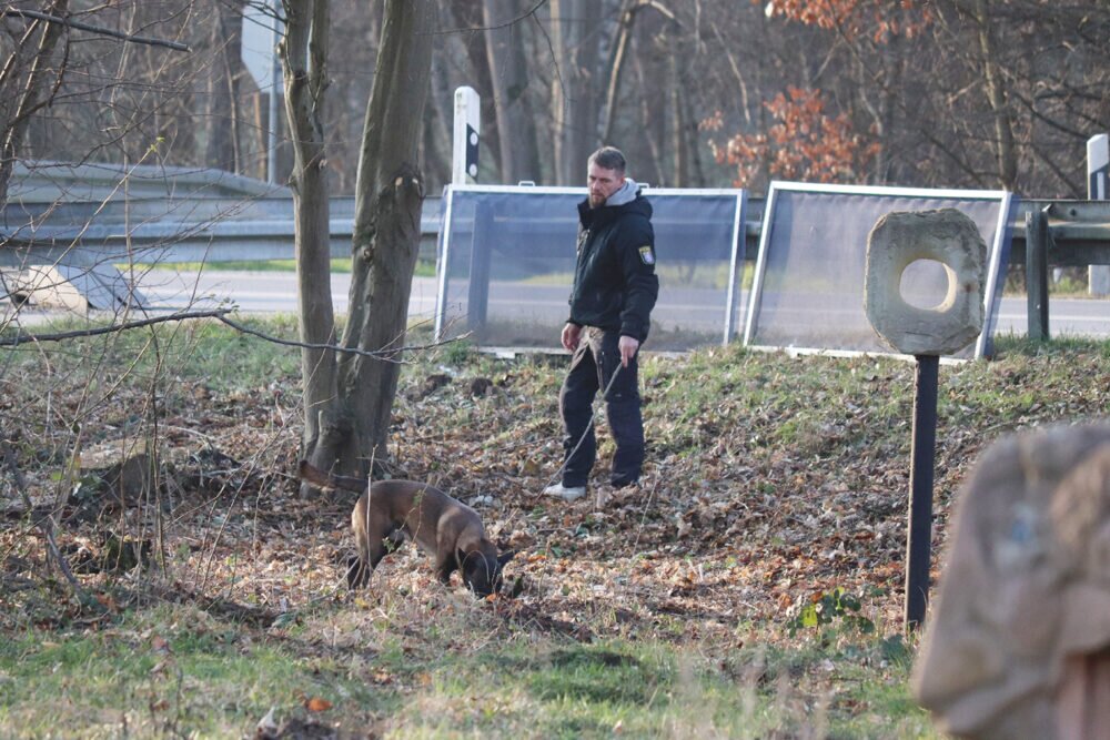 Bei der Suche waren zeitweise bis zu 30 Beamte, Polizeihunde und ein Polizeihubschrauber im Einsatz. Zu Beginn wurde der Suchbereich durch schwer bewaffnete Kräfte der Beweis- und Festnahmeenheit bewacht.