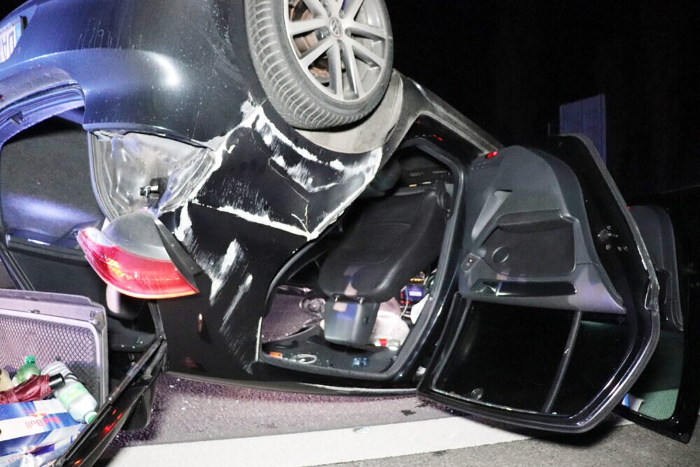 Ein Fahrzeug überschlug sich und blieb auf dem Dach liegen, der Fahrer wurde von Ersthelfern befreit.