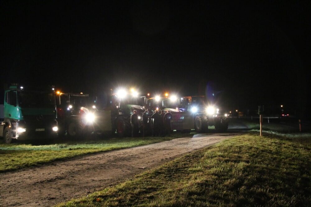 Rund 25 Landwirte haben am Freitagabend zum Auftakt der „Grünen Woche“ in Berlin an der Bundesstraße B 45 gegen zu scharfe Umweltauflagen, unangemessene Preise, unnötige Bürokratie und schlechte Rahmenbedingungen in der Landwirtschaft protestiert.