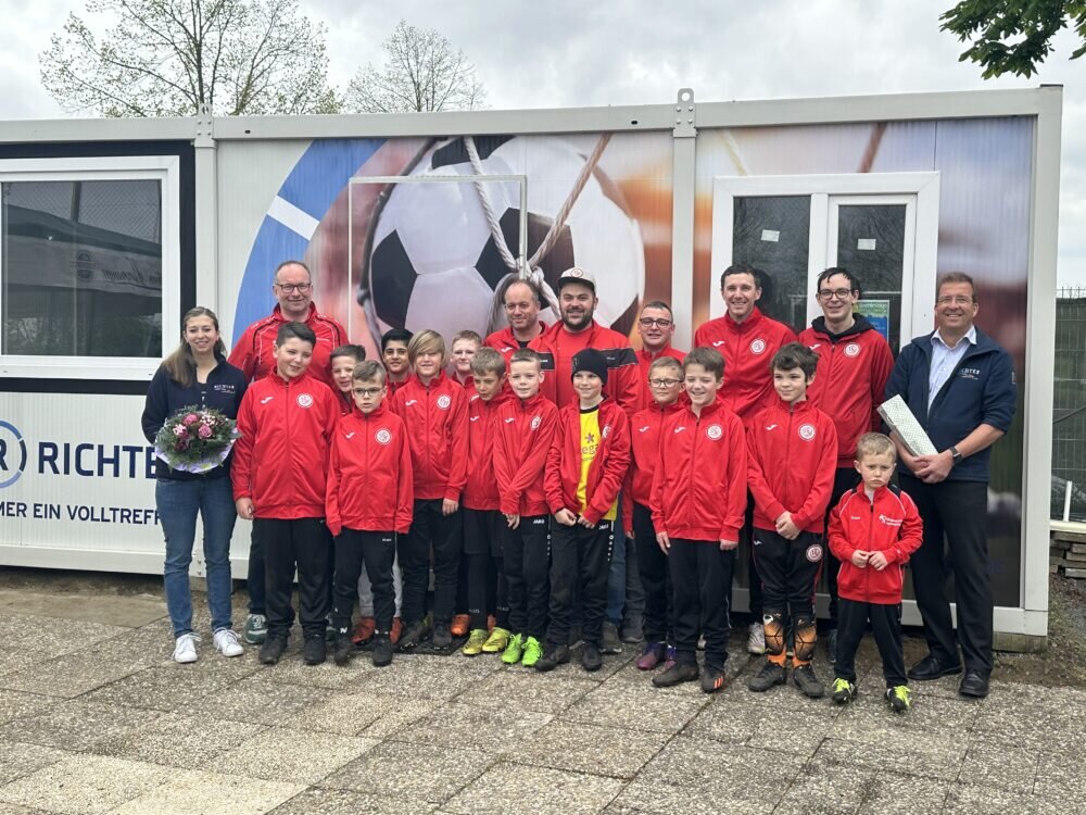 Bei der Übergabe war auch die E-Jugendmannschaft mit den ebenfalls von der Firma Richter bezuschussten neuen Trainingsjacken anwesend. red
