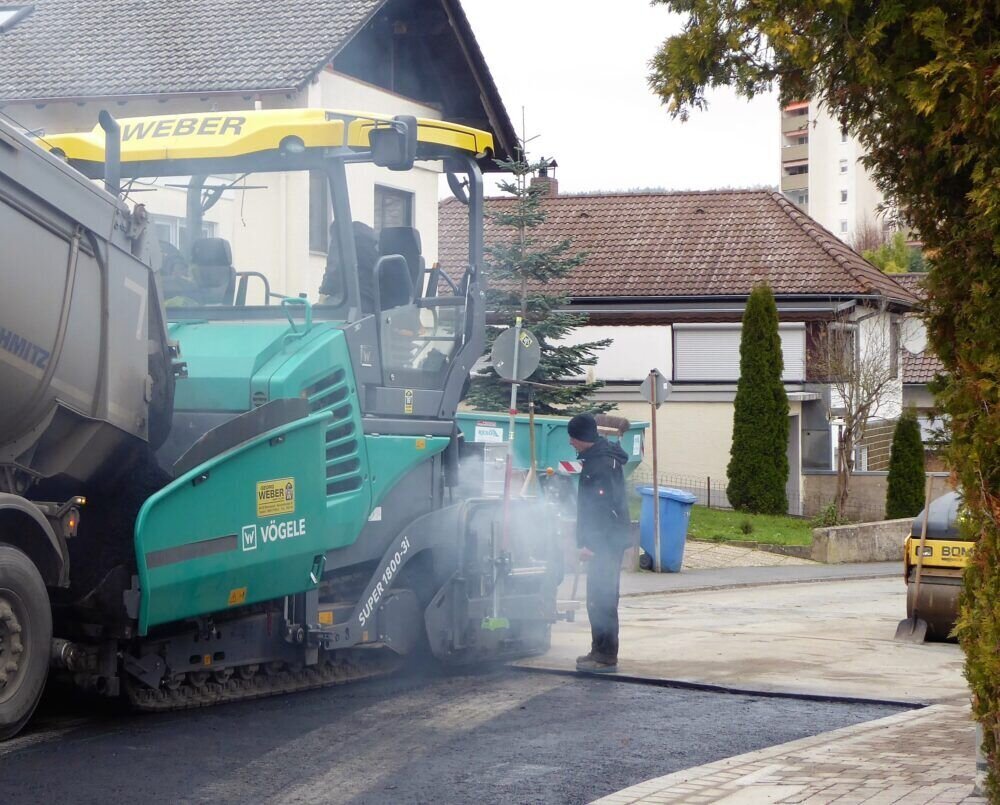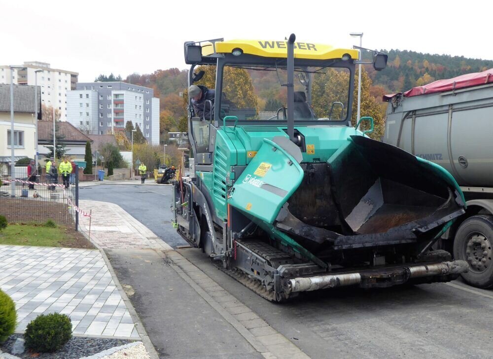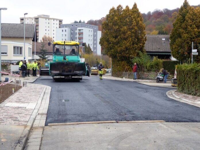 Die Bauarbeiten an der Kreuzung Friedhofstraße / Landrat-Hofmann-Straße in Michelstadt wird nach einer Bauzeit von zwei Jahren abgeschlossen. Derzeit wird die Asphalttragschicht aufgetragen.