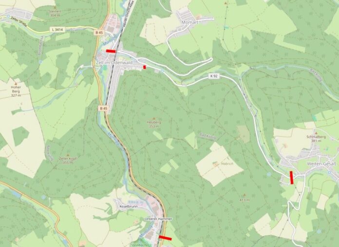 • Auf der B45 aus Richtung Michelstadt hinter dem Gewerbegebiet Asselbrunn. Die Zufahrt zur „Walther-Rathenau-Alle“ ist jederzeit möglich.