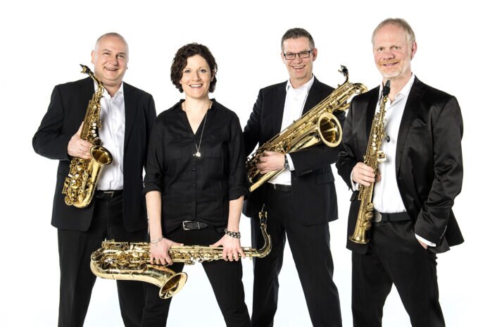 Es musizieren Stefan Weilmünster (Sopransaxophon), Bastian Fiebig (Altsaxophon), Susanne Riedl (Tenorsaxophon) und Jürgen Faas (Baritonsaxophon).