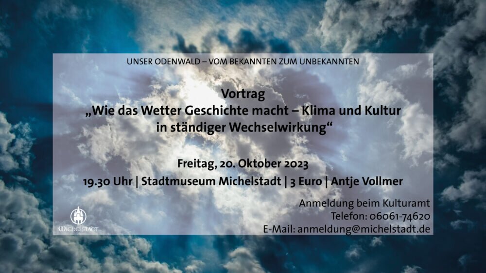 Michelstadt. In der Reihe „Unser Odenwald – Vom Bekannten zum Unbekannten“ behandelt der Vortrag: „Wie das Wetter Geschichte macht – Klima und Kultur in ständiger Wechselwirkung“ am Freitag, 20. Oktober, ab 19.30 Uhr den Einfluss von Klima auf die Gesellschaft.