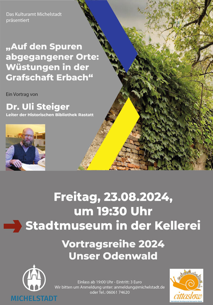 Die Teilnahme am Vortrag kostet drei Euro pro Person. Anmeldung beim Kulturamt unter Tel.: 06061-74620 oder per Mail an: anmeldung@michelstadt.de.