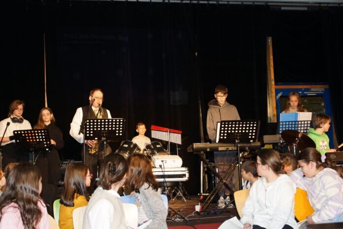Mit dem Chor der 5. Klassen und „Tochter Zion, freue dich“ wurde das Konzert stimmungsvoll eingeleitet. Der Coro belcanto, der sich aus Schülern und Schülerinnen der höheren Jahrgangsstufen zusammensetzt, setzte mit „Noel“ und „Wir preisen dich“ den stimmungsvollen Reigen fort. Rockiger wurde es, als die Schulband Musix loslegte. Unter anderem mit dem Klassiker „Mary’s boy child“ sorgten sie für viel Stimmung im Publikum. red