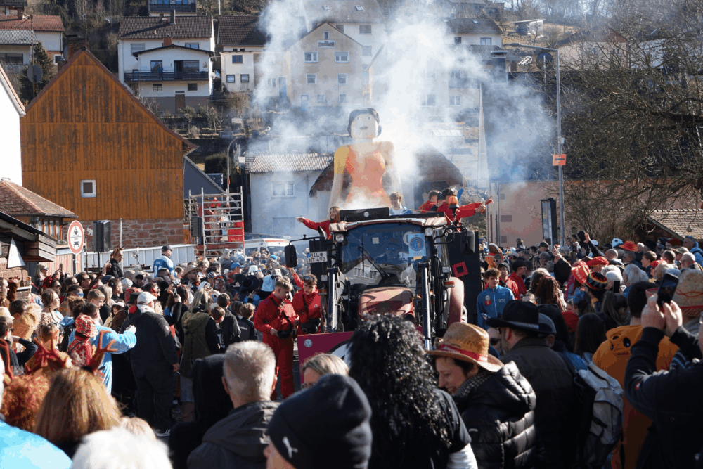 Der Sonntag steht dann ganz im Zeichen der großen Umzüge. In Lützelbach-Seckmauern rollt einer der größten Fastnachtszüge des Odenwalds durch die Haupt- und Odenwaldstraße. Mehr als 30 fantasievoll gestaltete Wagen, zahlreiche Fußgruppen und Garden sorgen für ausgelassene Stimmung – und für ein eindrucksvolles Bild, wenn rund 15.000 Zuschauer das kleine Odenwalddorf in eine närrische Hochburg verwandeln. Parallel wird auch in Michelstadt gefeiert: Der Faschingsumzug schlängelt sich ab 14.11 Uhr durch die Innenstadt, endet am Bienenmarktgelände und mündet dort in eine große Umzugsparty, die sich bis in die Kneipen fortsetzt.