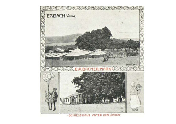 Erbach. 200 Jahre liegt es zurück, dass der Eulbacher Markt zum ersten Mal auf Erbacher Boden ausgerichtet und gefeiert wurde. Aus diesem Anlass präsentiert die Kreisstadt Erbach eine Jubiläumsausstellung, die während der zehn Festtage des Wiesenmarkts im kleinen Foyer der Werner-Borchers-Halle gezeigt wird. Die Eröffnung findet am Freitag, 19. Juli, um 17 Uhr statt. Die Ausstellung kann an allen Markttagen von 13 bis 18 Uhr besucht werden. Sie endet zeitgleich mit dem Wiesenmarkt am Sonntag, 28. Juli. Der Eintritt ist frei.